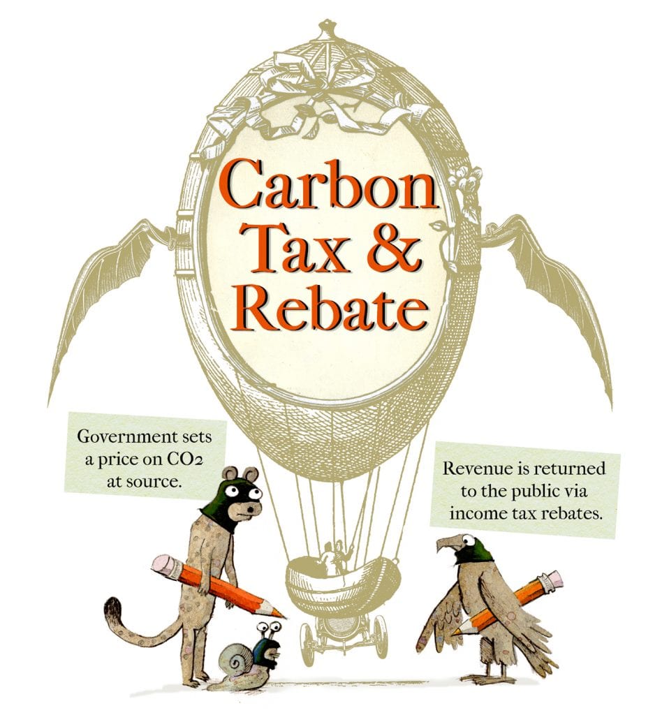 (OK this could be called Carbon Tax & Lump Sum, but to make it sound more upbeat we’re calling it a fee rather than a tax.)